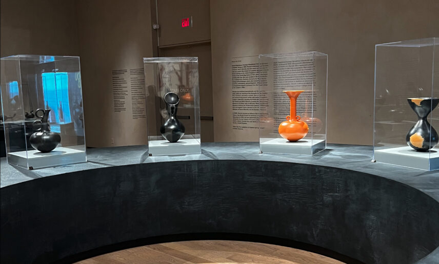 Spot-lit sweeping ceramic vases made by the artist Dame Magdalene Odundo were the centerpieces of the exhibition Magdalene Odundo: A Dialogue with Objects presented at the Gardiner Museum from October 2023 to April 2024. Organized by Sequoia Miller and Dame Odundo, the presentation was a transhistorical and transcultural journey through Odundo’s methodology and approach to making her matchless ceramic vessels. Carbonized and orange-ochre works produced throughout her career highlighted the gallery, while objects from around the world huddled around them, creating a pendulum of inspiration clearly reflected in Odundo’s work. This transcultural encounter formed the basis of the exhibition and of the learnings I received during the second annual Council for Museum Anthropology’s Ivan Karp Workshop in Museum Anthropology during the 2023 American Anthropological Association (AAA) Annual Meeting in Toronto.