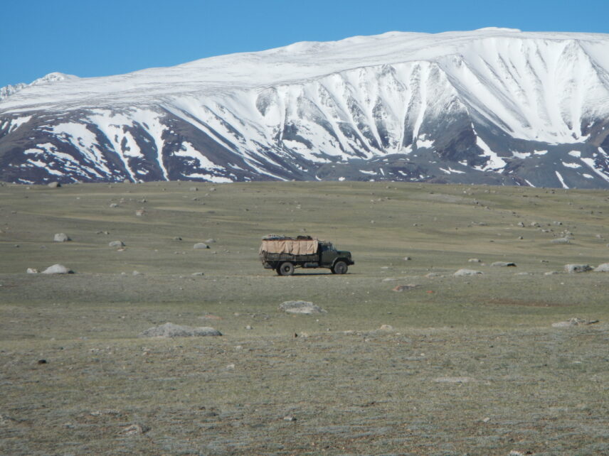 Fieldwork in Mongolia habitually necessitates moving over great distances. Most places are without mobile phone connection, which demands preparedness to overcome all kinds of unanticipated challenges by oneself. The often-nonexistent infrastructure, unpredictable weather, and extremely long distances and travel times place great stress on vehicles, typically old and rundown Soviet vans and trucks. Pälsi and Ramstedt trekked their journey for three months on horseback, and although we managed to make the same trip in about half that time, it included seven car breakdowns, with improvised repairs sometimes in snowstorms, and driving through a flash flood that washed the tracks away.